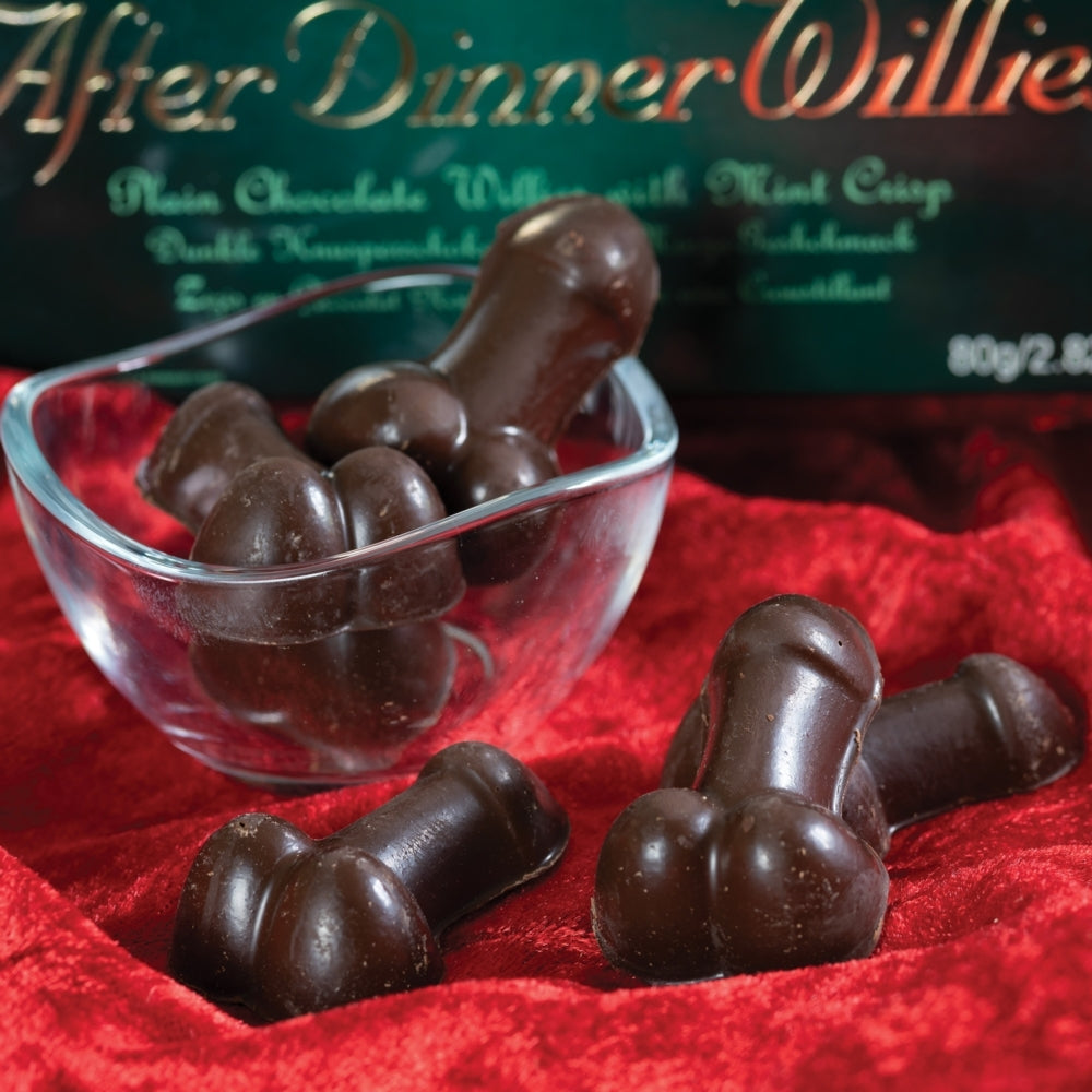 8 Plain Chocolate Willies with a hint of mint. After dinner will never be the same again with these great-tasting novelty chocolates.