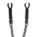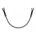 Black metal nipple clamps with chain. Easily adjust the pressure of the clamps with a twist of the barrel. Tug the chain to inflict pleasure and pain.