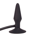A pliable and durable silicone inflatable plug with superior suction cup base an easy squeeze bulb and quick air release valve.  4.5 inches by 1.25 inches before inflating, doubles in width once inflated
