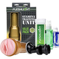 STU Value Pack Fleshlight. Pack contains STU Fleshlight, Shower Mount, 100ml Wash, 100ml Waterlube and Renewing Powder. Shower Mount is compatible with the standard Fleshlight case in all colors but clear and is now compatible with all Flight cases as well. Product is not compatible with Blade, Sword, and Sex in a Can products.