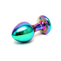 This multi coloured anal plug has a bulbous shape tip, narrow shaft and a flat base. Depending on the light and surroundings the colour changes from golds, pinks and greens. In addition to normal erotic massage you can also vary with tempertures. You can use a glass dildo cold or hot.