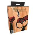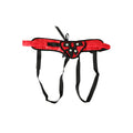 Slip into this gorgeous, lace up corset, strapon, made of plush red lace fabric. Fourway adjustable straps for up to 60 inch hips. Perfectly placed pocket that could hold a bullet vibrator Not included for clitoral stimulation. Accommodates dildos with flared base includes 3 interchangeable rubber Orings 1.5 inch, 1.75 inch, and 2 inch. Machine washable Dildo sold separately.